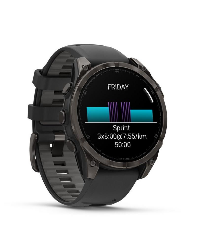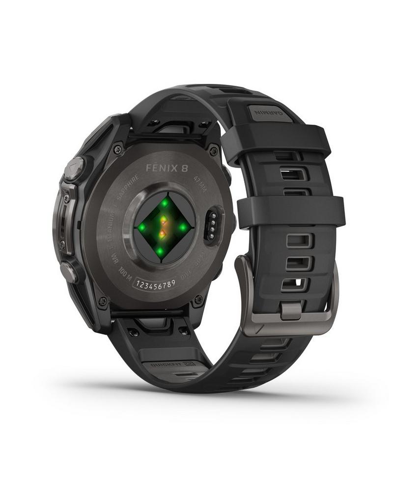 The Garmin Fenix 8 Sapphire 47mm GPS Smartwatch is your ultimate companion for pushing boundaries and achieving new heights. This premium multisport watch features a bright 1.3” AMOLED display, housed in a rugged design with a titanium bezel and scratch-resistant lens. With up to 10 days of battery...show more