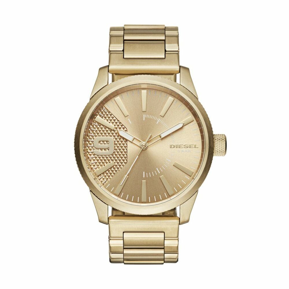 Wear the ultimate expression of Diesel style and design evolution on your wrist with the Rasp watch. A machine-knurled gold-tone case and multi-link bracelet let the rich, multi-layered asymmetric dial shine.
